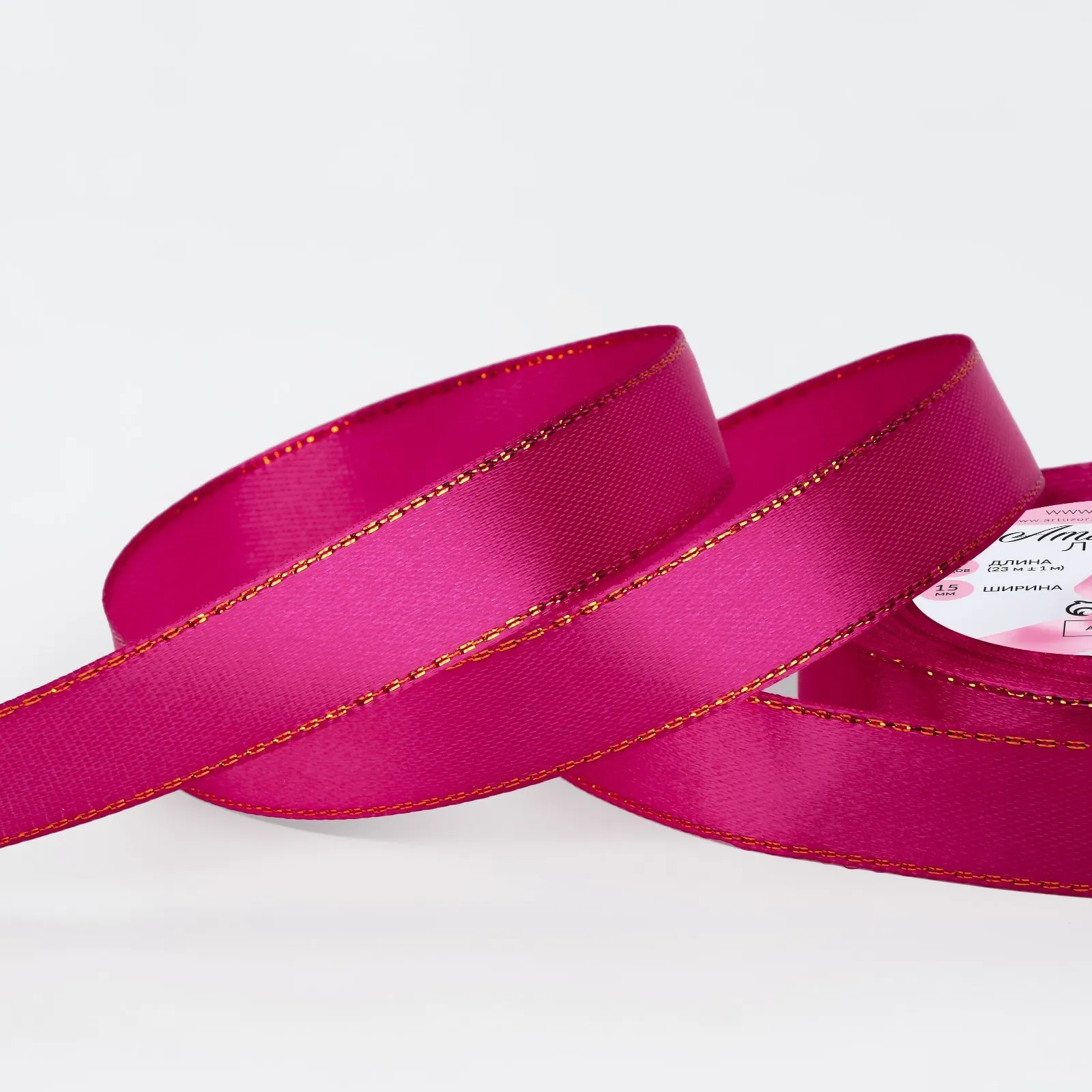 Лента атласная 15 мм ЗОЛОТЫЕ НИТИ МАЛИНОВАЯ 22м